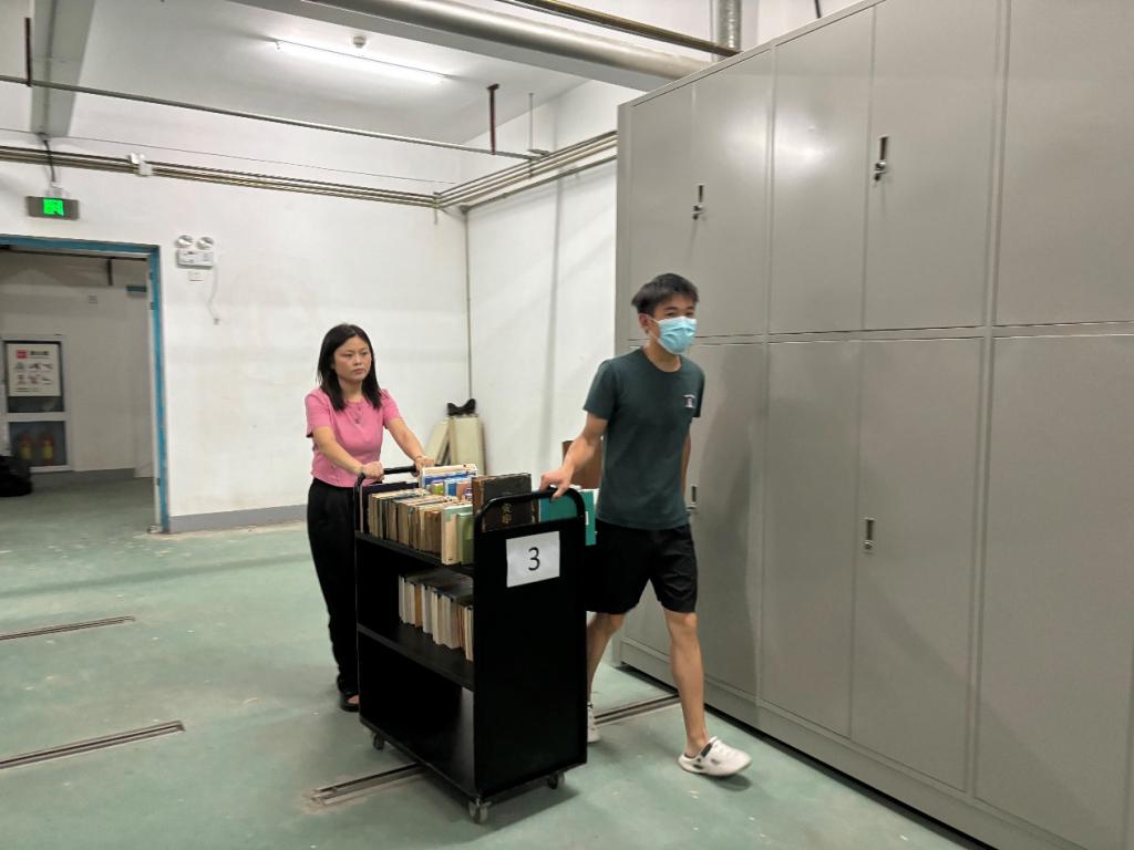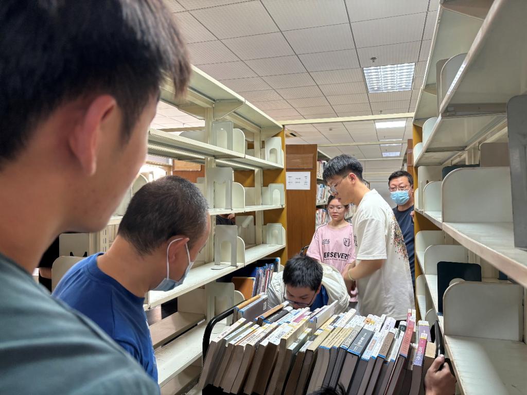 在图书馆工作人员的带领下,党员志愿者们分成两组,分别负责书籍的下架和搬运工作。活动中,全体党员分工明确,紧密协作,有序地将图书馆C区五楼的馆藏全部移至流通三线书库。在志愿活动结束后,图书馆工作人员带领党员们参观了流通三线书库,并详细介绍了该书库的情况。该书库容量达100万册,藏书仍可外借,但需由专门管理员协助查找。