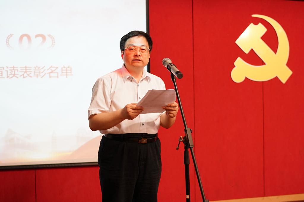 赓续共产党人精神血脉,传唱红色经典,献礼建党百年。6月30日下午,学院隆重举办“七一”表彰大会暨“献礼百年 红歌传唱”合唱比赛,一批优秀党支部和先进个人受到表彰。学院党委副书记朱平主持表彰大会。学院全体领导、全体教职工党员及学生代表参加了活动。