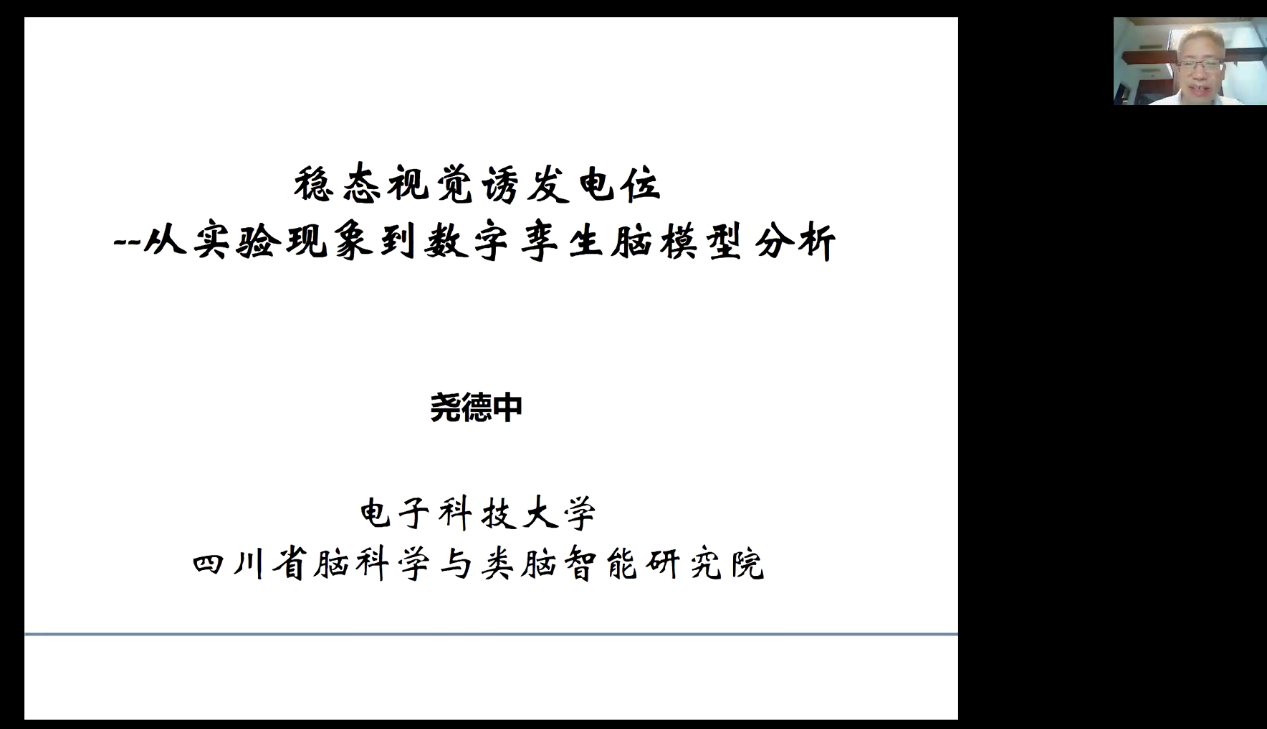 电子科技大学尧德中教授作了题为“稳态视觉诱发电位-从实验现象到数字孪生脑模型分析”的报告,汇报了其团队近10多年来在稳态视觉诱发电位(SSVEP)实验现象的观测、SSVEP脑网络机制、以及新近基于数字孪生脑模型的机制探索工作。