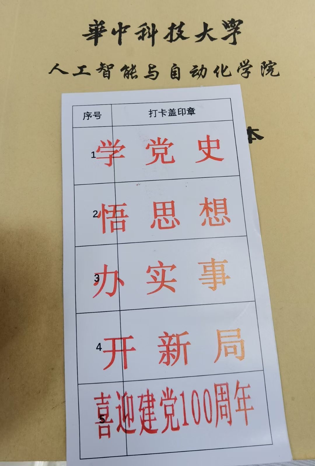 活动以毛主席像作为起点和终点,共在西十二教学楼、建校纪念碑、永丰广场、梧桐雨问学中心和醉晚亭设置了五个党史知识加油站。师生们需在起点领取手卡,前往所有加油站,进行党史知识问答,并分别完成“学党史、悟思想、办实事、开新局”“喜迎建党100周年”的打卡。