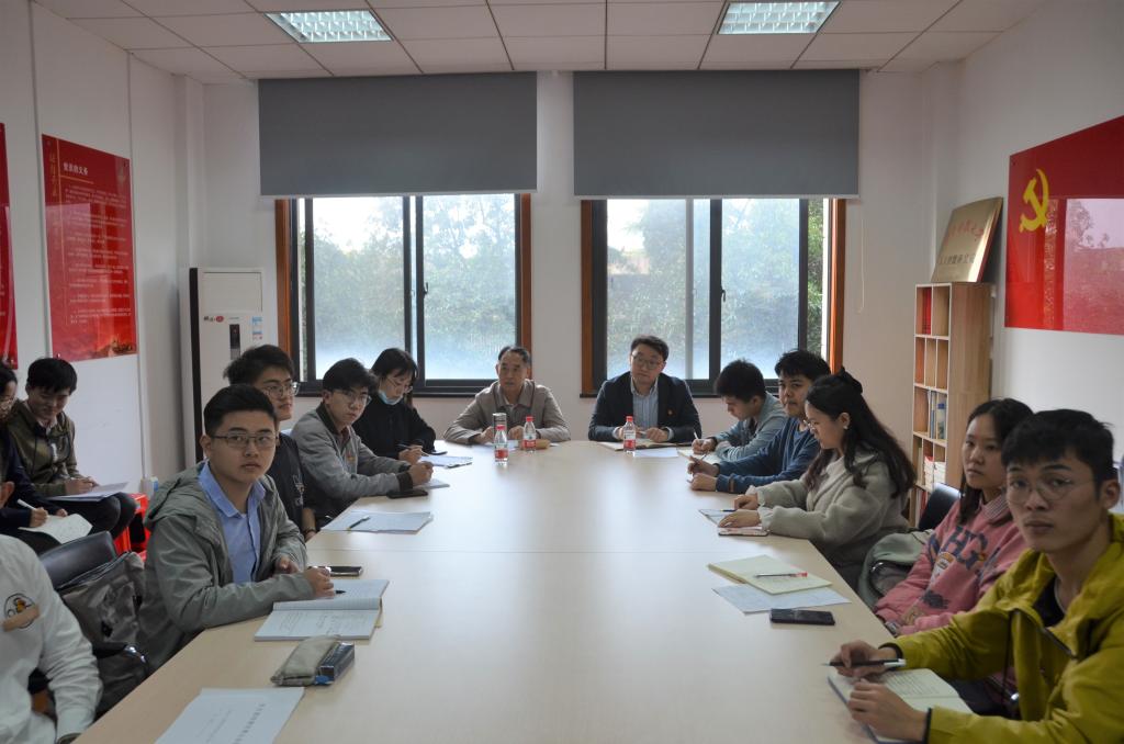在学院党委帮扶毕业年级学生情况介绍部分,本科2017级辅导员贺聪炜介绍了学院党委指导各基层党支部为毕业年级开展的帮扶工作,并提出了下一阶段的具体要求;最后组织委员组织支部党员收缴党费并通报党费收缴情况。