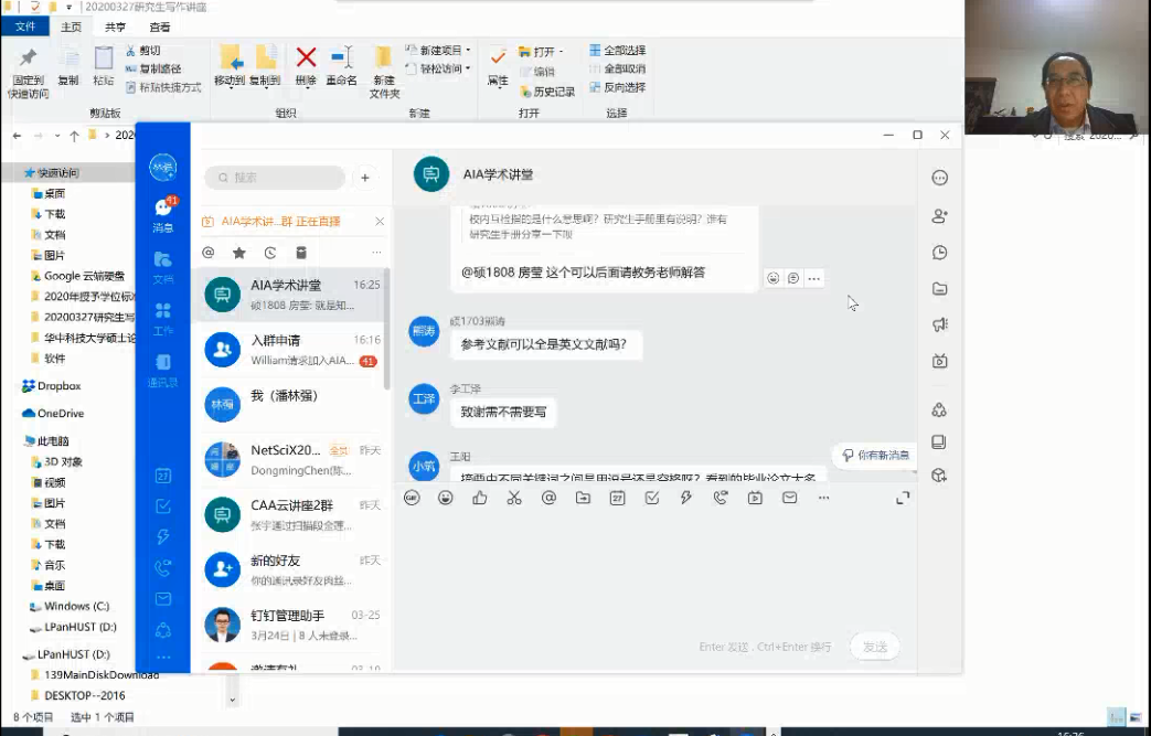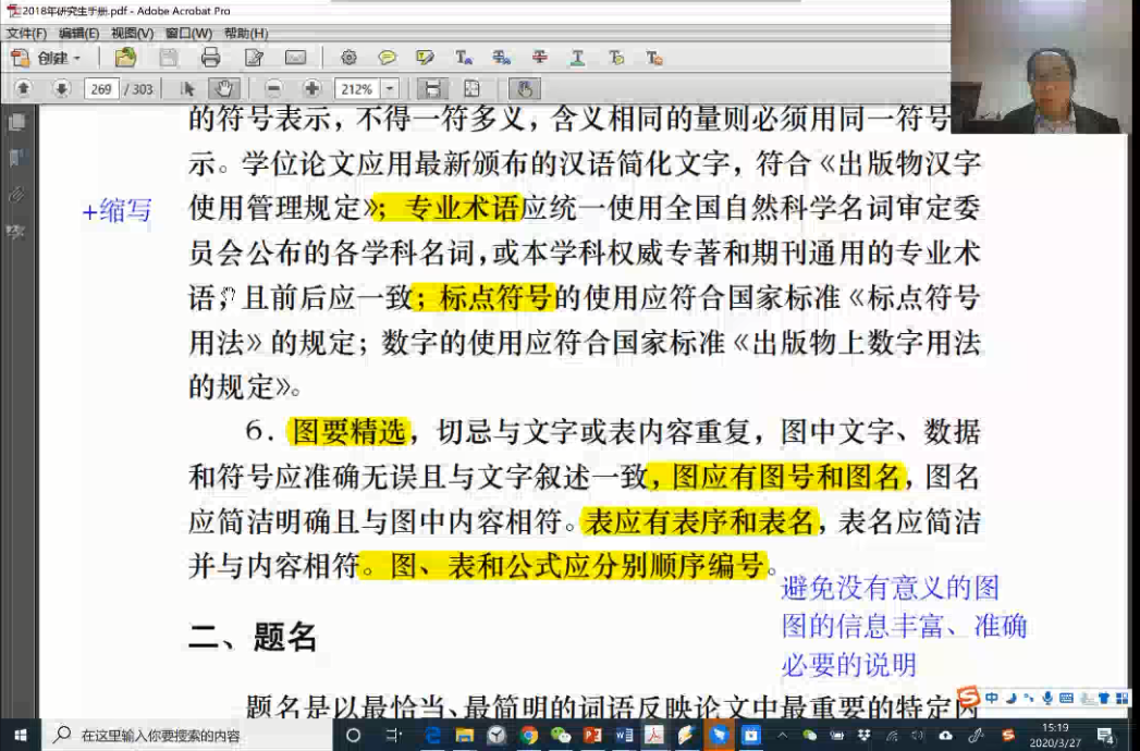 为落实国家和学院关于防控疫情期间研究生工作的的要求,尽最大可能帮助毕业年级研究生克服疫情带来的不便,3月27日下午,学院专门组织了一场在线“研究生学位论文撰写规范专题讲座“。学院副院长潘林强教授通过解读《德赢官网Vwin,德赢AC米兰官网博士、硕士学位论文撰写规定》,讲解撰写论文排版注意事项、常用的排版软件等要点,对毕业研究生的论文写作进行了一次详尽的线上指导。近300名毕业年级硕博研究生参加了此次线上讲座。