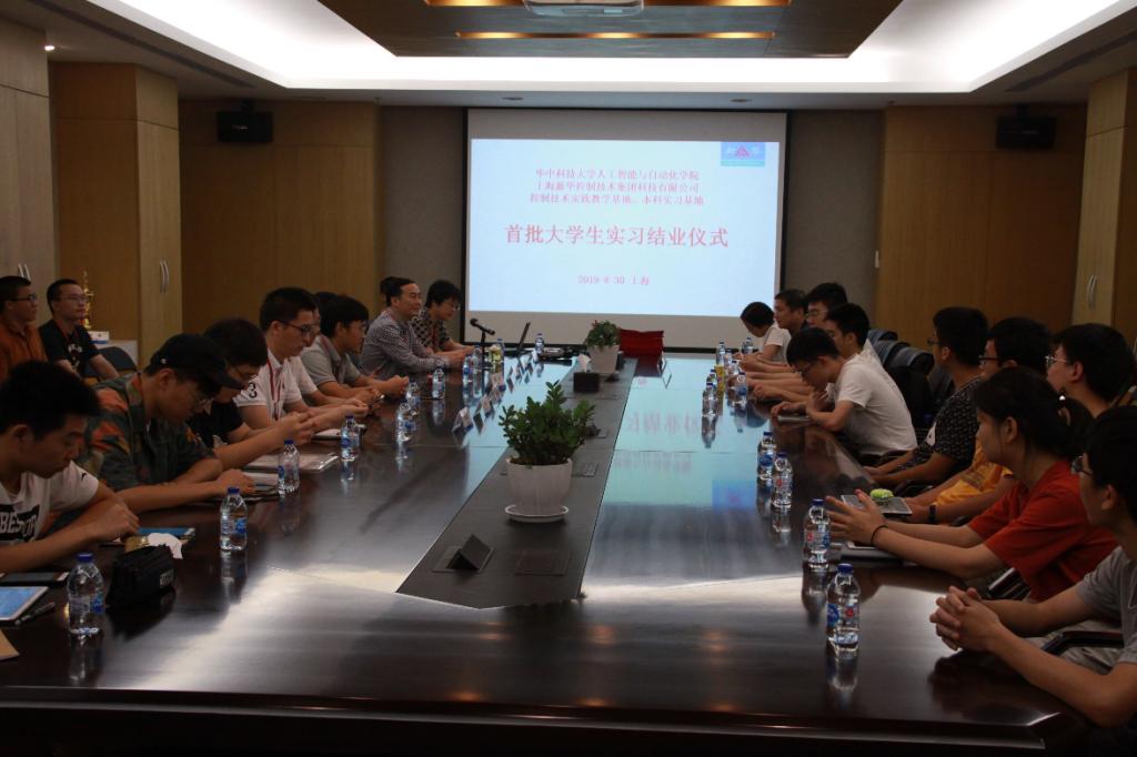8月30日下午,新华科技公司举行了德赢官网Vwin,德赢AC米兰官网首批大学生实习结业仪式,公司执行副总陈光远先生为每个同学颁发结业证书,为大家留下永恒的记忆。在总结中,陈光远副总对实习工作给予了充分的肯定,对华科大学生的学习和动手能力大加赞赏,表达了加快推进合作指导本科毕业设计和工程硕士的强烈愿望。陈曦老师代表实习指导老师进行了总结发言,用“生活上过得安全舒适、工作上学的全面充实、成果上收获信心希望”三句话对实习工作进行了总结,特别对新华科技为本次生产实习提供的舒适生活环境和细致后勤保障服务进行了感谢。新华科技公司安排了火车接站、免费宿舍和免费餐食、丰盛的接待宴会,周末休闲旅行、专车接送服务等工作,事无巨细,细致入微,保障了本次实习的安全圆满的完成。最后,同学们围绕关注的自动化控制行业发展、新华控制未来展望、毕业生待遇、技术人员发展规划的问题进行了提问,新华科技各级领导都进行了详尽的解答,并表示热烈欢迎华科大的学生来新华发展。