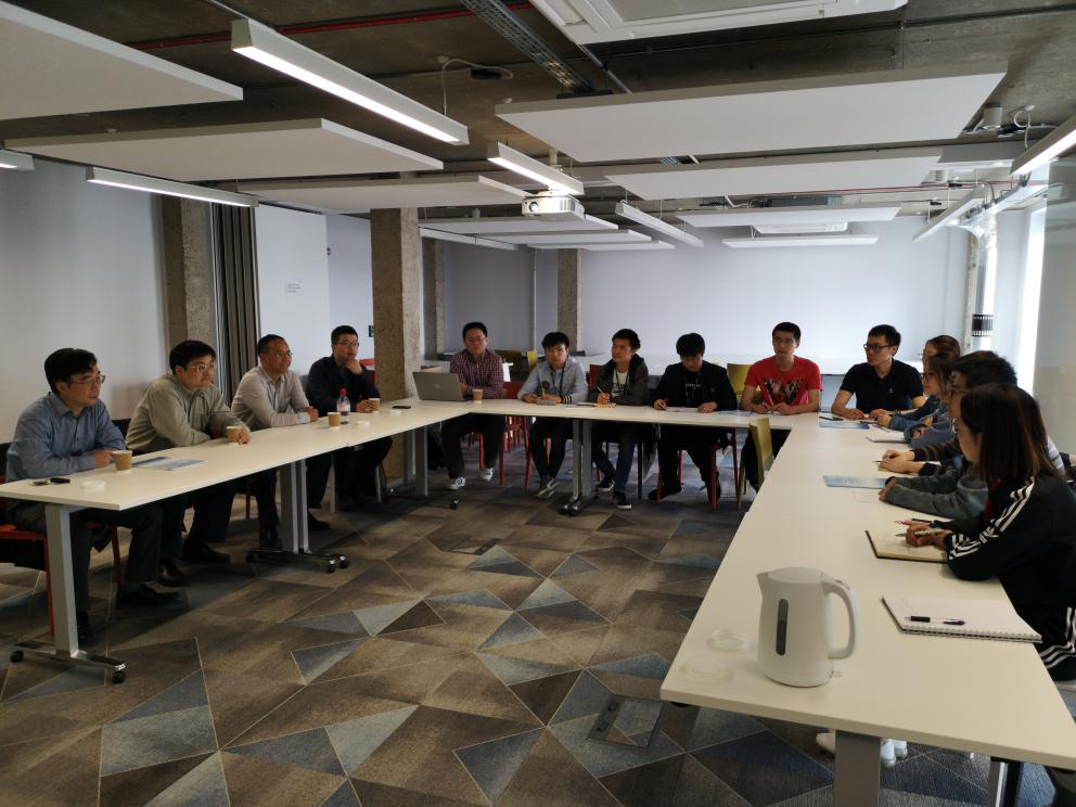 在布鲁内尔大学的访问过程中,为了营造轻松愉悦的氛围,招聘会以师生座谈会的形式举行,由该校的王子栋教授主持,共有十几位教师学生参加。在座谈会上,首先由布鲁内尔大学的学生向大家汇报了自己目前的研究方向和研究状况。然后,王子栋教授向大家介绍了布鲁内尔大学的历史背景、学科方向以及团队取得的成果。听了王教授的介绍,曾院长等人赞誉有加,对王教授团队目前的发展状况、研究方向以及团队精神给予了高度评价,并表达了进一步合作的意向。接下来,曾院长向大家介绍了德赢官网Vwin,德赢AC米兰官网的发展历史、学科发展状况、优秀学科评级、学院学科研究战略部署以及相应的研究平台。特别地,曾院长详细说明了关于本次访问的重点--人才引进计划的待遇情况,并表达了对国外优秀人才的渴望。通过曾院长的详细讲解,在场的老师和学生产生了浓厚的兴趣。最后,胡靓博士向大家汇报了他在CPS理论与应用方面的研究工作,吸引了曾院长等人的强烈关注。