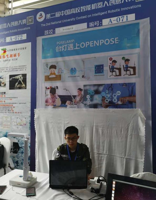 创意组作品经过海报展示、PPT介绍、实物展示、专家提问等环节,由专家进行打分,评选出兼具创新性和实用性的作品,德赢官网推出的作品“POSELAMP 基于图像姿态识别的智能台灯”以预决赛总分之和第一名获得一等奖。解魔方机器人项目比赛竞争激烈,德赢官网队伍在10秒内完成了解魔方的全部动作,是仅有两支在10秒内完成了比赛的队伍之一。在格斗机器人仿人视觉对抗组的两天的比赛中,德赢官网的2支队伍经过一天的调试在第二天的比赛中完美发挥,以绝对优势领先其他院校取得本项目第一名和第三名。