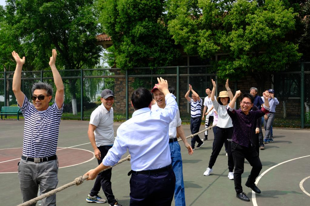 严西湖碧草如茵的湖岸小道,微风习习,杨柳依依,令人陶醉。老师们或三五成群,高谈阔论,或快意双行,轻言慢语。岸边墅区连绵的建筑掩映在浓荫之下,自成一派风格。阳光和煦,鸟语花香,沁人心脾。在饱赏春光春景之后,全体教工齐聚运动场开展集体趣味活动,比试体魄。大家玩起了花式踢毽、跳绳、运球上篮,最后在孩子们的欢呼与喝彩声中,老师们分为两队进行拔河比赛。在整齐有力的“一二一二”的号子声中,双方队员全力以赴、乐在其中。虽然比赛终有胜负,但胜出方欢呼不断,惜败方亦笑声连连,运动场上洒满了欢声笑语。