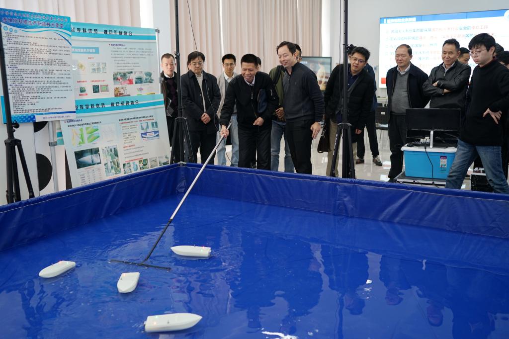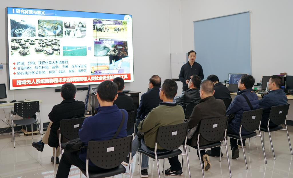 在“多谱信息处理技术”国家级重点实验室,省政协调研团队听取了德赢官网专家教授的汇报。副院长钟胜教授介绍了本实验室在图像识别与人工智能领域取得的部分科研成果,副院长张海涛教授介绍了德赢官网创新团队在全自主无人艇关键技术攻关中取得的研究进展,曹治国教授介绍了“智能视频监控关键技术”“三维目标检测与识别”“智能视觉感知的人体行为分析”“基于计算机视觉的农作物发育状态自动观测”等国家级、省部级项目研发和应用情况。现场还展示了2018CVPR“鲁棒视觉挑战赛”--“单目图像深度预测”竞赛全球第二名等多个获奖项目的演示,以及全自主无人艇在环境感知、自主避障、导航控制及多艇协同等多方面的研究成果。在测试现场,工作人员演示了无人机目标识别、轮式机器人与无人机协同,无人机通过计算机视觉导航技术实现了移动车辆上的全自主降落。