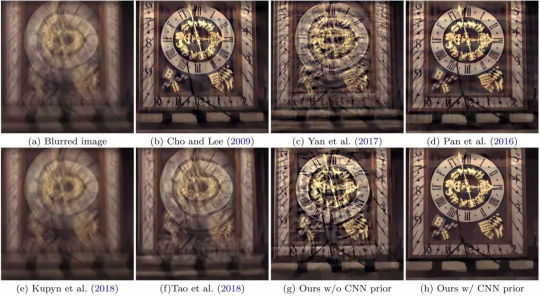 该论文提出一种基于判别式先验的模糊图像盲复原算法,克服了现有复原算法中先验约束泛化性能差的问题。该研究通过卷积神经网络来训练一个二分类器,这个网络以图像作为输入,并输出一个标量数值,其代表了输入图像是模糊图像的概率。算法将这个网络作为一种先验约束嵌入到由粗到精的 MAP(最大后验)框架中,对潜在的清晰图像进行约束,用于估计运动模糊核。通过在现有的运动模糊图像数据集测试,该论文提出的算法相较于现有的图像复原算法可以得到更清晰的边界,更精细的细节,以及更少的伪影。同时,该论文通过更换训练数据,将提出的这个判别式先验扩展到图像去雾算法中,同样取得了较好的复原效果。