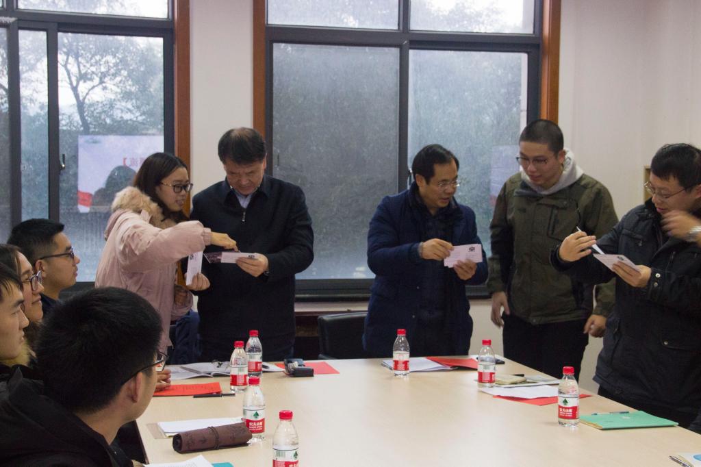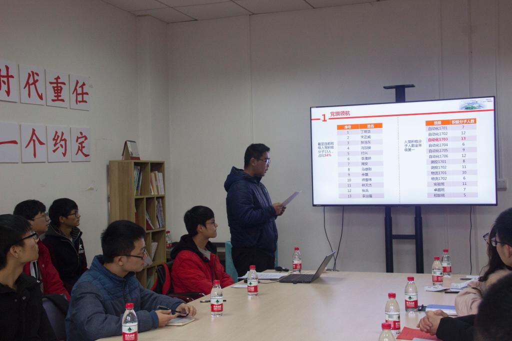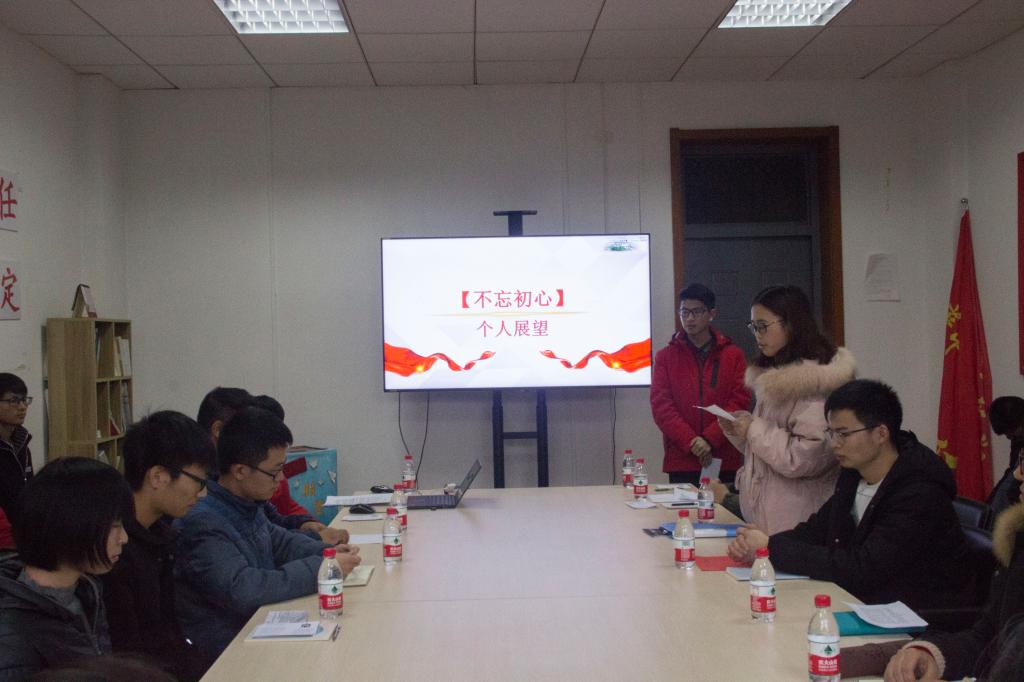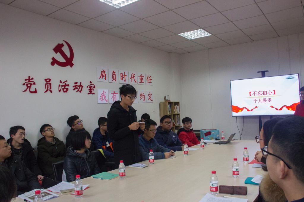 随后,班委代表依次汇报了学生工作的开展情况。在“不忘初心”个人展望环节,获得国家奖学金的李澳妍同学讲述了一年来学习生活的心路历程,树立了继续深造,科研报国的坚定理想;马继刚同学在一年多的学生工作中感受到了自我规划与目标设立的重要性;付兴同学则结合志愿者经历表达了自己对班级建设和传承胡吉伟精神的一些看法:“切身体会胡吉伟精神,并从小事做起”。