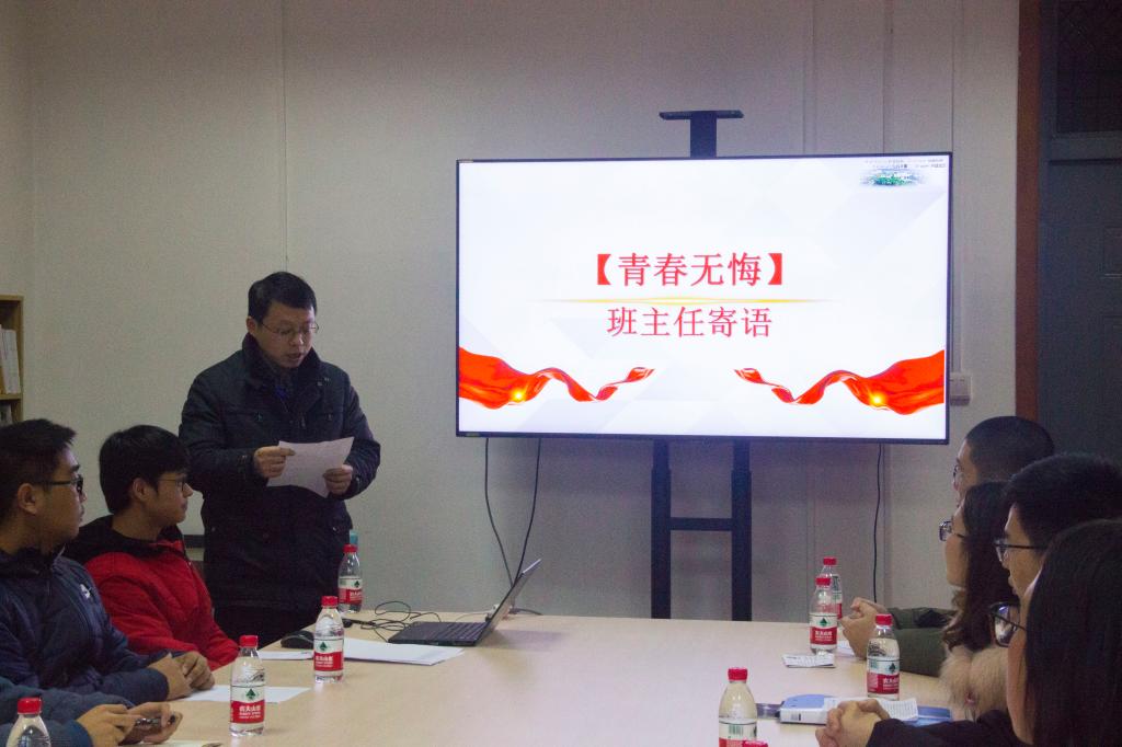 接下来,教师班主任颜露新教授对班级同学深切寄语,他肯定班级2018年优良成绩的同时,也警醒同学们切实做好规划,学有目标,以德立班,责任以行。