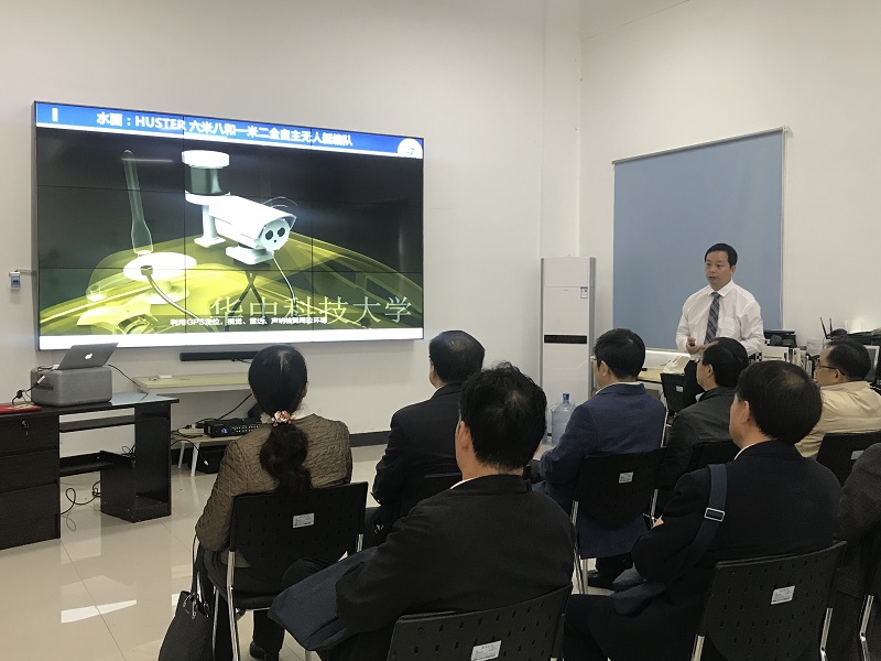 丁烈云一行集中参观了自动化学院的实验室。在多谱信息处理技术国家级重点实验室,钟胜教授汇报了实验室近年来取得的代表性成果,以及为我国卫星和无人飞行器的智能化探测识别和导航领域作出的重大贡献。丁烈云对实验室面向国家重大需求取得的成绩给予了高度评价,并希望进一步扩大学术影响,促进成果转化。