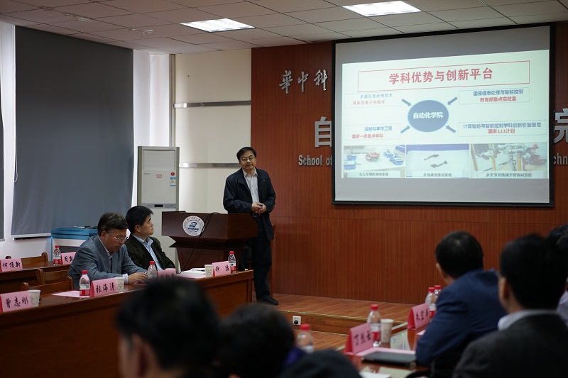 丁烈云认真听取了汇报。他指出,自动化学院基础很好,发展思路清晰,这几年取得了很好的成绩,为学校工程学、计算机科学、数学等几个学科的ESI排名作出了突出贡献。自动化学科是一个有中国特色的专业人才培养学科,要有自己的载体和领域,要利用现有的基础和经验打造成品牌。丁烈云对自动化学科建设的发展提出两点建议:一是学科要面向国家重大需求,要顶天立地,要与行业相结合,在专业建设和学科建设方面形成自己的特色,扩大自己的学术影响,促进成果转化,能够个性化、特色化地融合发展。二是进行资源整合,充分利用军民融合的契机,将工业安全、跨域无人系统、国民经济动员等学科优势进行整合,形成特色优势。