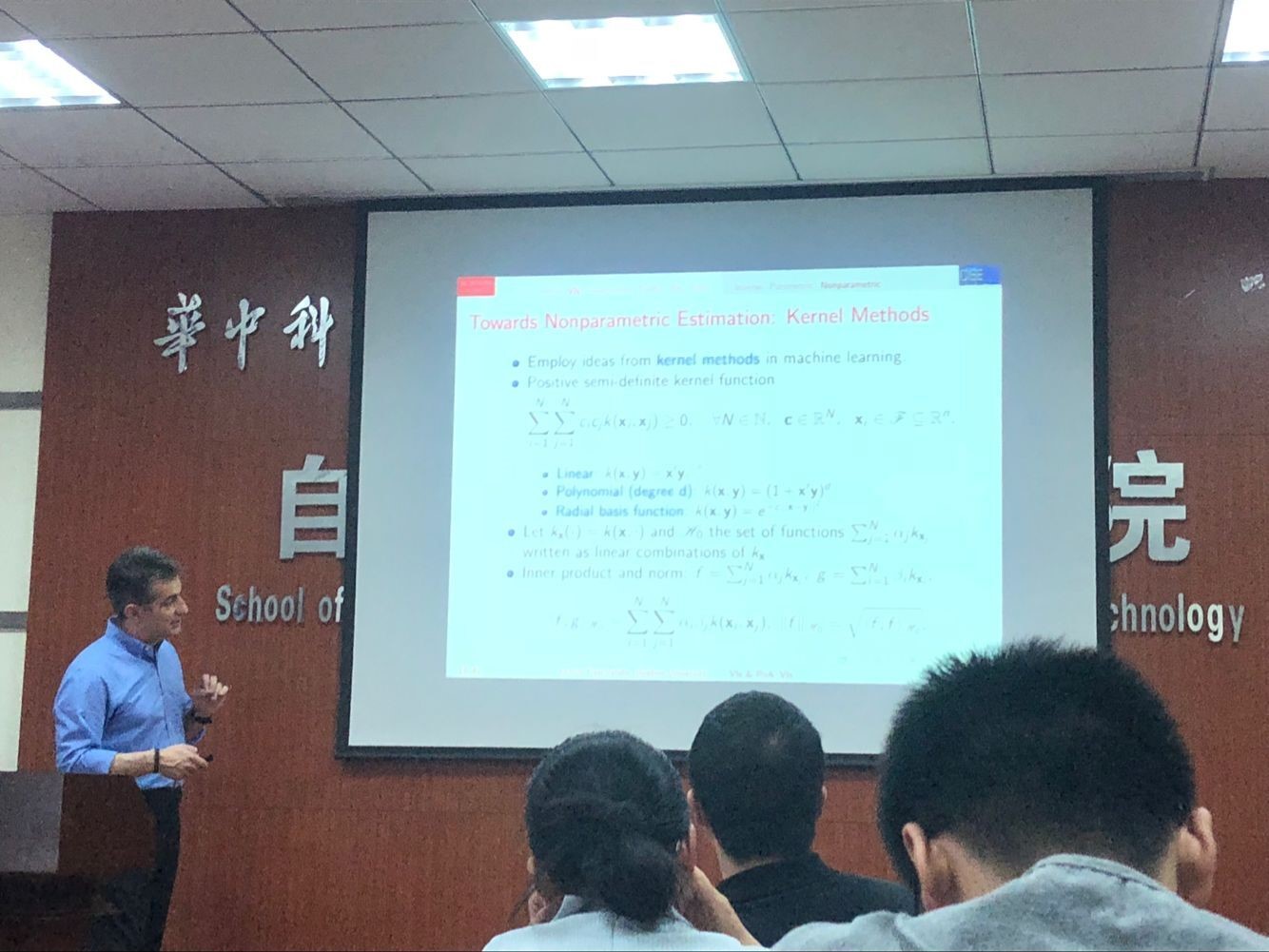 第二场报告是关于分布式鲁棒学习方法及其在医学预测诊断领域的应用。在医学应用的驱动下,假设训练数据被污染(未知的)异常点, 这会影响模型的参数。Yannis教授提出的鲁棒学习方法能够防范这些异常,并学习与非外围数据相一致的模型参数。同时,Yannis教授对该方法的性能建立了严格的样本保证,并开发了非线性模型的扩展,在这种情况下,不同的预测模型用于不同的数据簇, 甚至单个数据点。除了预测之外,还可以利用该鲁棒预测模型做出决策,并提供具体的个性化处方和建议。