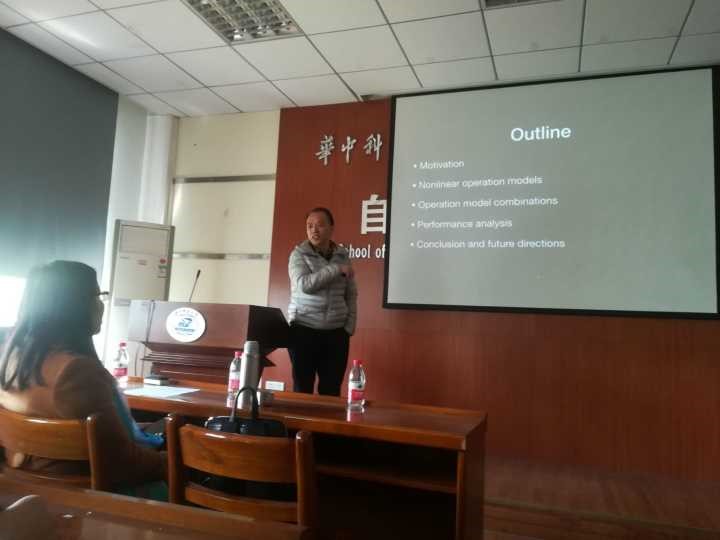 2018年4月8日,澳门大学周怡聪副教授应郑英老师的邀请来自动化学院做学术交流。上午,周副教授做了题目为“Nonlinear Operation Models for Producing 1D Chaotic Maps”学术报告,报告会由郑英教授主持,有德赢官网万一鸣副教授,武汉科技大学张永副教授等校内外师生30余人参加了报告会;为了和德赢官网老师和学生更深入地交流,周副教授在下午和学院部分师生做了小范围学术研讨会,气氛热烈。
