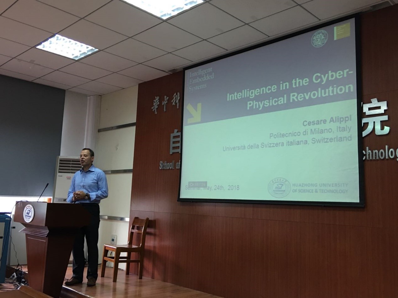 首先是Cesare Alippi教授带来题为“Intelligence in the cyber-physical revolution”的报告。Alippi教授于1990年获得电子工程学士学位,并于1995年获得意大利米兰理工大学的博士学位。现任意大利米兰理工大学信息处理系统和网络物理与嵌入式系统的全职教授。Alippi教授是IEEE会士,任IEEE计算智能学会教育副总裁,国际神经网络学会副主编,现任IEEE Transactions on Emerging topics in computational intelligence副主编,曾担任IEEE CIS等多个期刊副主席,同时还是英国伦敦大学、美国麻省理工学院、中国科学院等机构的客座研究员。