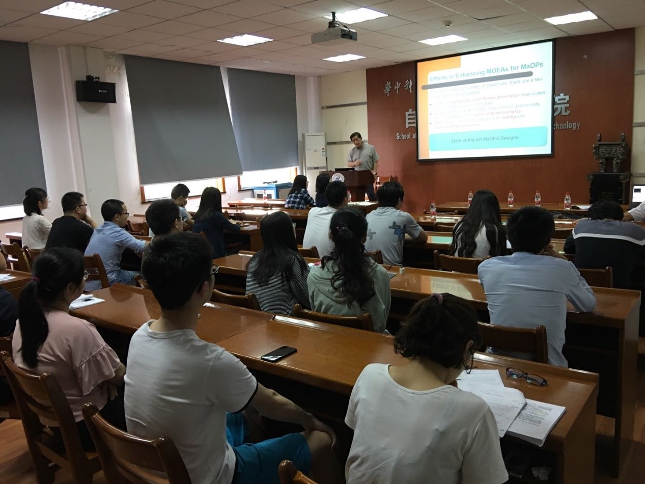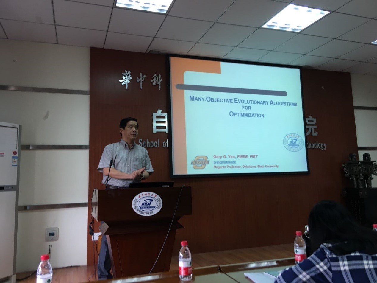 首先是Gary Yen教授带来题为“State-of-the-Art Evolutionary Algorithms for Many Objective Optimization”的报告。Gary Yen教授于1992年在美国圣母大学获电气与计算机工程专业的博士学位。目前为美国俄克拉荷马州立大学电气与计算机工程学院的董事讲席教授(Regents Professor)。Yen教授是国际智能控制、计算智能、进化多目标优化等领域著名专家学者,在智能控制、多目标优化、健康监测及其工业/国防应用做出了突出的工作。Yen教授是IEEE和IET Fellow。2010-2011年,任IEEE计算智能协会主席。曾担任IEEE Transactions on Neural Networks, IEEE Control Systems Magazine, IEEE Transactions on Control Systems Technology, IEEE Transactions on Systems Man and Cybernetics 和Automatica的编委。目前是IEEE Transactions on Evolutionary Computation 和 IEEE Transactions on Cybernetics的编委。Gary G. Yen教授是IEEE Computational Intelligence Magazine的创始主编。2011年获得IEEE系统、人与控制协会的Andrew P Sage最佳会刊论文奖。2013年获得由IEEE计算智能协会颁发的卓越功勋奖。2014年获得Lockheed Martin航空卓越教学奖。