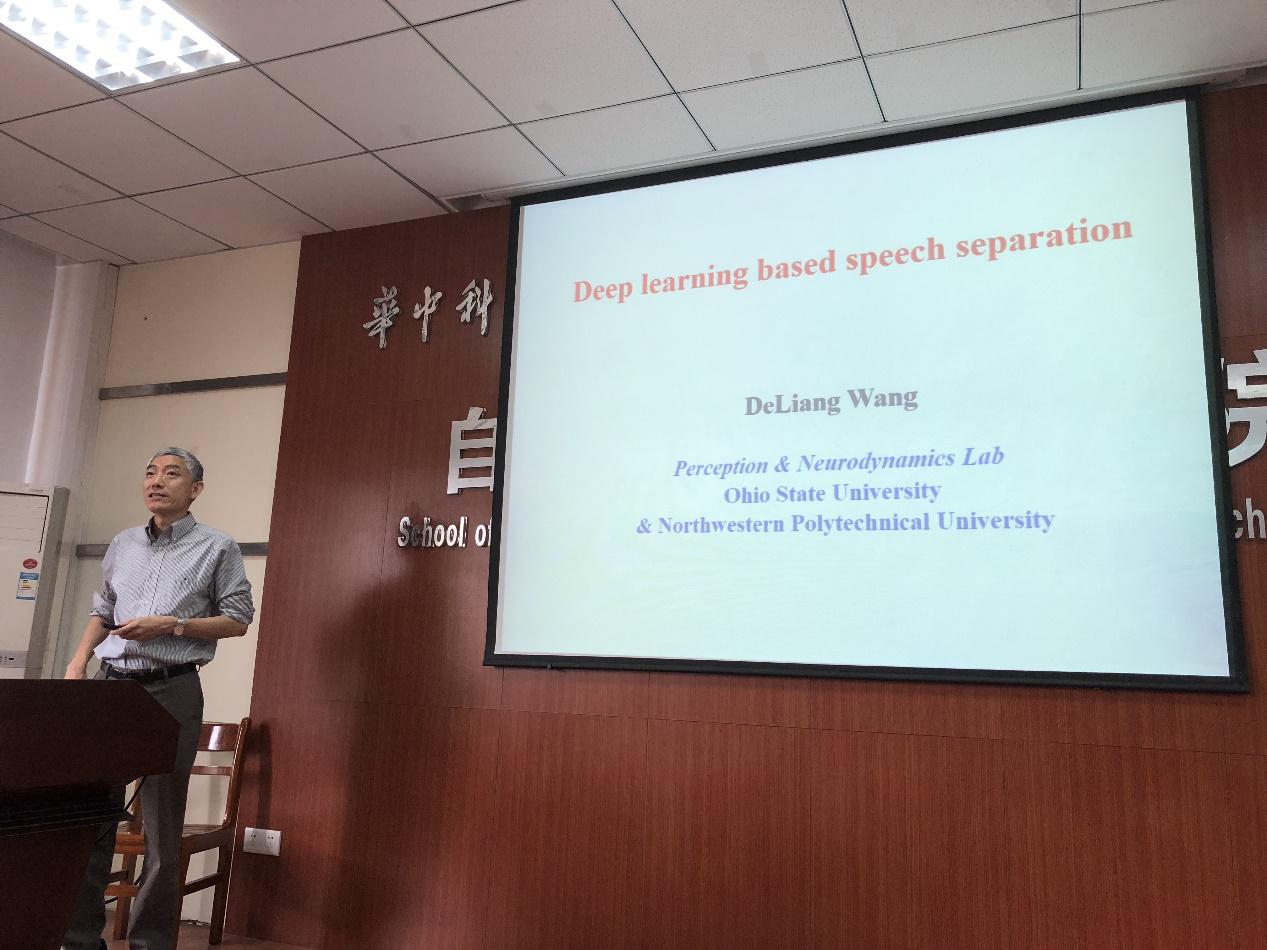 5月3日上午10时,美国俄亥俄州立大学DeLiang Wang教授应邀来德赢官网进行学术交流,并作了题为“Deep Learning Based Speech Separation”的学术报告。德赢官网曾志刚教授,王小平教授,温世平副教授,刘慧副教授和德赢官网111引智基地海外专家、美国密苏里科技大学Donald Wunsch教授等30多位师生参加了报告会。