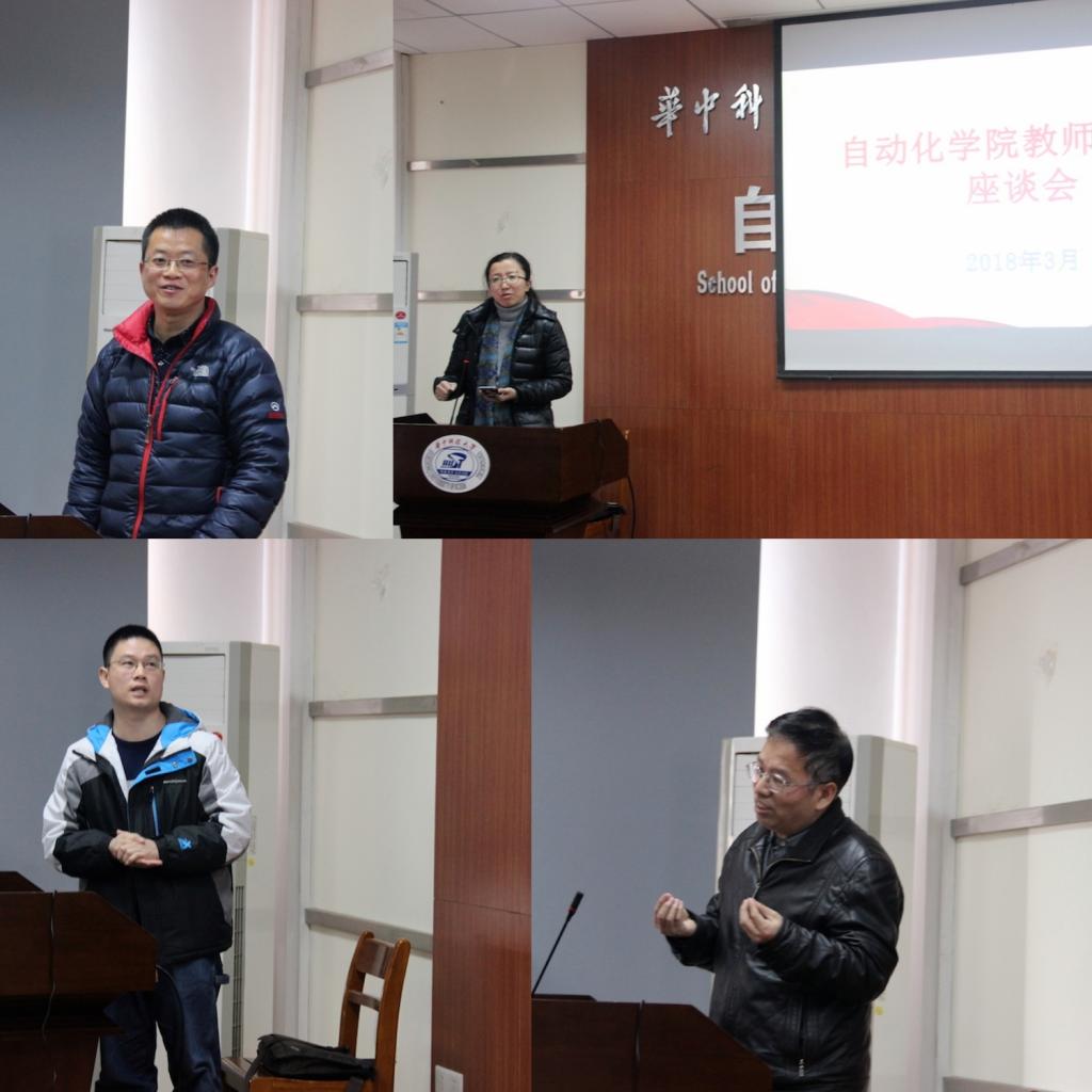 17级教师班主任代表、青年伍冬睿教授分享了通过召开班会、班委会、班级活动等能够很好的促进班级建设,进而更好的促进学风建设。16级教师班主任代表、副院长桑农教授讲到要充分发挥研究生班主任的朋辈引领作用,要充分发挥班干部的带头作用,凝聚良好的班级风气,同时要关注后进学生,注重个性化培养。15级教师班主任代表、2017年校“我最喜爱的教师班主任”、工会主席周纯杰教授分享了自己带班经验,要让学生对学习有正确的认识,要有更早的职业规划,更高的人生追求,并且他提出班主任应该积极动员学生搞好身体。14级教师班主任代表李炜副教授则结合班级四年来的发展、结合班级学生的出路,分享了班级建设还需要积极开展实践教育,积极引导学生主动思考,努力培养学生主动承担国家、家庭、个人的责任担当;分管心理工作的辅导员李增宇结合身边的案例做了经验分享,并且介绍了常见心理疾病的表现症状,提醒教师班主任积极关心关注班上的每一个同学。