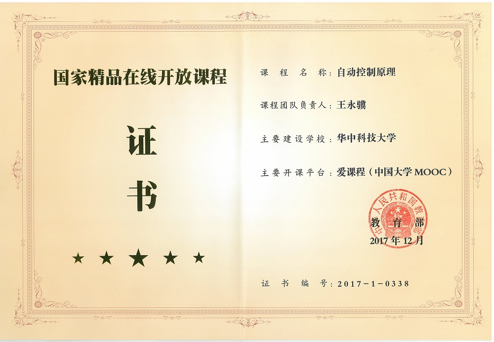 为适应在线教育的发展,德赢官网高度重视在线开放课程的建设与应用工作。2016年德赢官网王永骥教授牵头,成立自动控制原理MOOC建设工作组,学校和学院合计投入50余万进行两门MOOC课程建设,王永骥、王燕舞、秦肖臻、樊慧津、张海涛、黄剑、李炜等一批教学科研骨干教师担任主讲老师,推进在线开放课程建设应用与管理工作。截至目前,在中国大学MOOC平台上,《自动控制原理一》共开课4期,选课学生超过5万人,《自动控制原理二》总计开课2期,选课学生已超过万人。2017年12月,《自动控制原理》获得教育部授予的“国家精品在线开放课程”称号,这也是德赢官网首个国家级精品课程。