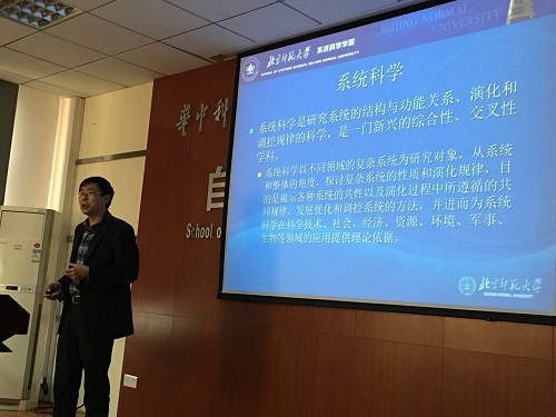 报告中,狄增如教授首先给我们简要介绍了系统科学及其对现代社会的重要意义。狄教授说到,在20世纪科学发展的基础上,对复杂系统涌现性的研究已成为21世纪科学探索的重要领域,它与时间之矢、生命起源等基本科学问题紧密联系在一起。在这一方向上的科学发展表明,纷繁多样的复杂现象背后,可能存在着简单的规律,挖掘其基本规律并在系统范式的基础上形成科学认识,是系统科学研究的重要任务。接着狄教授介绍了他们团队近期的一些科研工作,以群体行为、城市演化研究等为例,介绍了探索复杂系统中的普适规律的研究成果。最后,狄教授结合自己丰富的科研经验给与会师生提出了良好的学术建议,并寄予殷殷期盼。