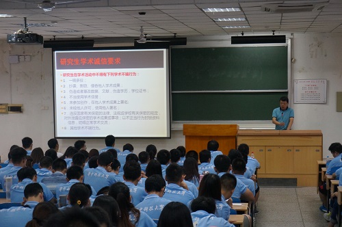 9月5日上午在东十二F102,自动化学院副院长沈安文教授面向全体研究生开展研究生培养教育。沈安文分别对全日制专业硕士研究生、学术性硕士研究生以及博士研究生的培养计划和学业要求等多方面进行了详细的讲解;同时对研究生的学术规范、学术诚信做出了明确的要求,列举了多项违背学术规范的条例,为德赢官网研究生科研诚信敲响了警钟。紧接着研究生教务科王红艳老师对研究生教务工作做简要介绍,对研究生课程安排、毕业标准进行了详细的介绍。