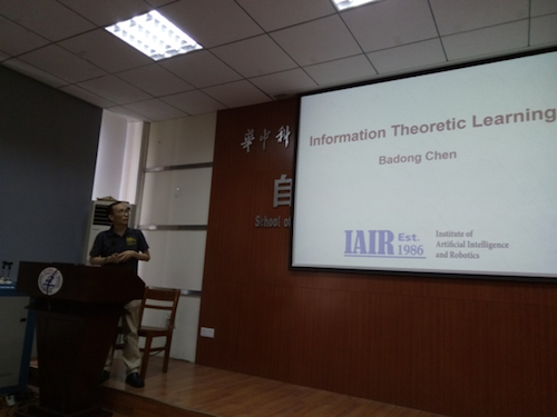 2017年8月16日 下午4点,西安交通大学陈霸东教授应王小平教授邀请来德赢官网进行学术交流,在南一楼311会议室为德赢官网师生做了一场题为“Information Theoretic and Correntropic Learning” 的学术报告。报告由德赢官网王小平教授主持,20余名师生参加了本次报告会。