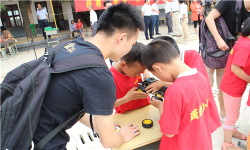 我校驻村工作队队长叶智、田德生带领德赢官网一行首先来到孝昌县王店镇藕塘小学,时值六一儿童节,德赢官网向藕塘小学捐赠了玩具和文具,送上节日祝福。控制创新基地指导老师何顶新副教授带领团队学生向小学生们展示了无人机航拍,带领他们自主动手组装智能车,进行了一场别开生面的小学生智能车竞赛。通过引导他们动手参与,提前接触科技创新,树立学习目标。藕塘小学校长在与德赢官网师生座谈中感谢了我校对学校发展的帮助,并与德赢官网师生进行了交流。
