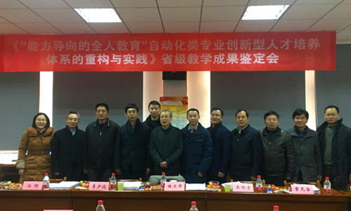 2017年1月21日下午,德赢官网周纯杰教授牵头承担的《“能力导向的全人教育”自动化类专业创新型人才培养体系的重构与实践》教学成果鉴定会在我校成功举行。本次鉴定由湖北省教育厅高教处委托我校教务处组织,鉴定委员会由中南大学桂卫华院士、教育部自动化类专业教指委副主任委员上海交通大学李少远教授、武汉科技大学副校长吴怀宇教授、华中农业大学教务处处长江珩教授以及湖北大学教务处处长章天金教授5位专家组成。我校教务处处长郭兴蓬教授主持会议,学院院领导张耀、曹治国、王燕舞以及项目组成员何顶新、周凯波等参加了本次会议。