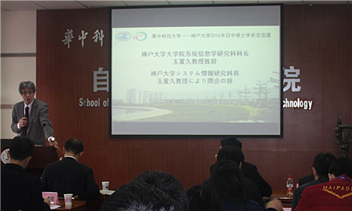 神户大学大学院系统信息学研究科科长玉置久教授致辞。玉置教授先对神户大学以及神户大学大学院系统信息学研究科进行了简单的介绍,并向大家说明了樱花计划的详细信息,也向华科师生的热情招待表示了感谢,期待接下来一周的交流能有更大的收获。
