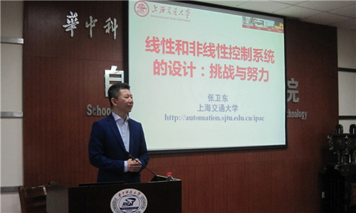 11月16号,上海交通大学张卫东教授应关治洪教授邀请到德赢官网参观了图像信息处理与智能控制教育部重点实验室, 并就海陆空自主体协同控制等问题进行了研讨。16号下午, 张教授做了题为“线性和非线性控制系统的设计:挑战与努力”的学术报告。报告会由关治洪教授主持,黄剑、王小平、刘庆山等教授和校内外师生40余人参加了报告会。