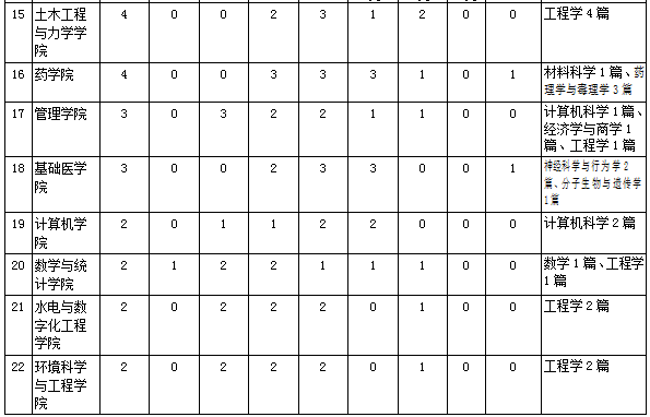 说明:由于一篇论文的第一作者、通讯作者、合作者往往不是同一个人,或者分属不同单位,参照ESI统计规则,所有作者与机构同等对待。因此附表二中的论文总数大于我校实际入选的高影响论文总数。