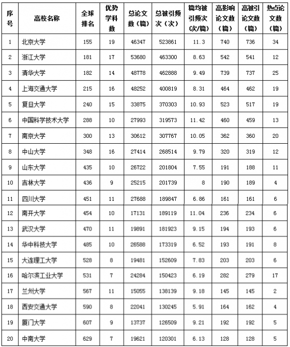 从高影响论文的学科分布和院系分布来看,工程学、材料科学、物理、化学、计算机科学等学科领域的交叉融合较强,说明我校已经形成以特色优势学科为核心,与其他学科交叉融合的学科体系。