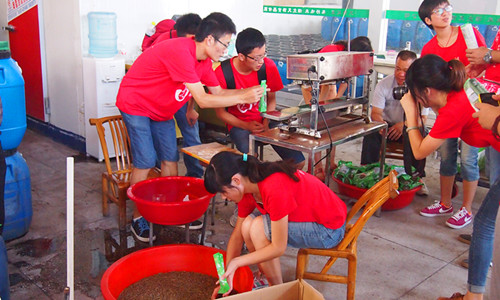 围绕“党员深入群众,实践中国梦”的主题,实践队先期对利川民营经济的发展做了系统的走访和调查,做到心中有数。8月24日,自动化学院党委副书记孔姝及学工组全体辅导员参加了实践队出征仪式,强调了实践的注意事项。孔姝叮嘱实践队在外注意安全,用心感受实践的过程,做到有收获、有成长,同时要以党员先锋责任意识要求自己,投身基层一线,获得锻炼和提升。从8月25日起,实践队根据利川特色农业发达、特色产品开发及市场营销状况、民营企业快速发展的现状,对康美食品、天佛莼菜和汇川农业等民营企业进行了走访。目的是通过对上述民营企业的创业历程、产品开发、市场营销和未来发展的具体调查,掌握民营企业发展的基本线索,从而激发大学生自主创业激情。通过实地体验本地居民生活、探访群众生活现状,同时考察基层党组织在带领群众致富中的作用。