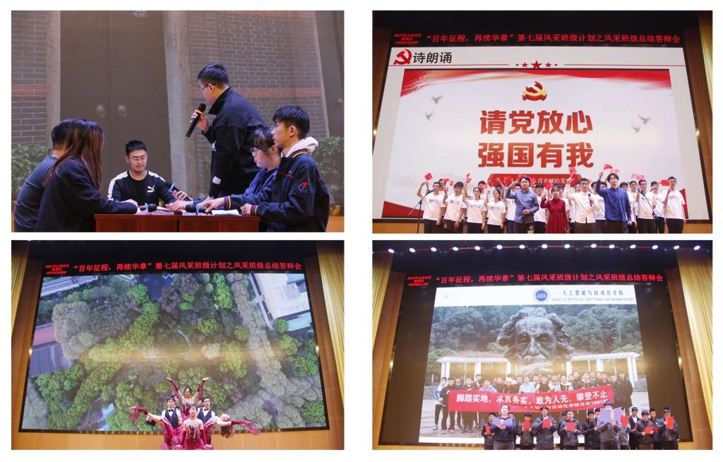 来自本科2020级、2019级两个年级共26个班级前期通过从篮球赛、班歌合唱、班服设计等一系列活动的参与,经过对各班级思想引领、学风建设、实践公益、文化科创等多方面进行全面综合的评价,最终共11个班级入围了此次总结答辩会。答辩展示环节,各班别出心裁地讲述着班级风采故事,从思想建设到学习拼搏,从科学研究到班级活动,伴随着台上同学饱含激情的解说,一张张精美的幻灯片,记录着大学时光中努力奋斗的点滴。歌曲、朗诵、情景剧……丰富的表现形式异彩纷呈,重现了学习生活的美好瞬间,宣告着青春“请党放心、强国有我”的铮铮誓言。经过答辩展示及综合评分,校级交流1901班获得“最佳风采班级”荣誉称号。