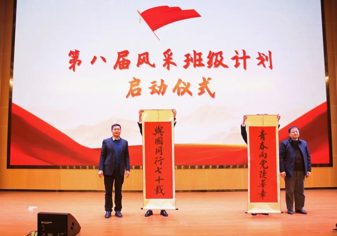 活动最后,耿远明、曾志刚共同打开卷轴,揭晓下一届风采班级计划活动主题,“与国同行七十载,青春向党续华章”,启动第八届风采班级计划。