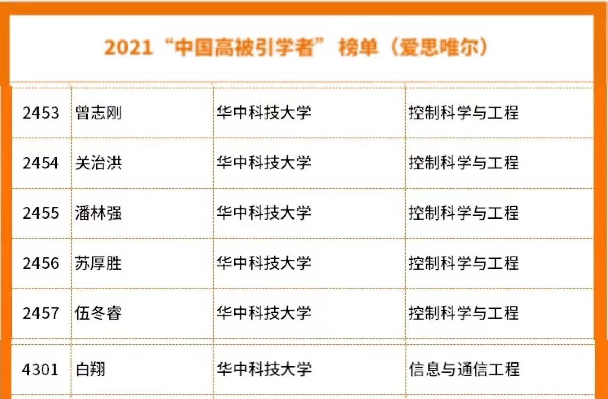 德赢官网关治洪、伍冬睿、潘林强、苏厚胜、曾志刚、白翔6位学者入选该榜单。