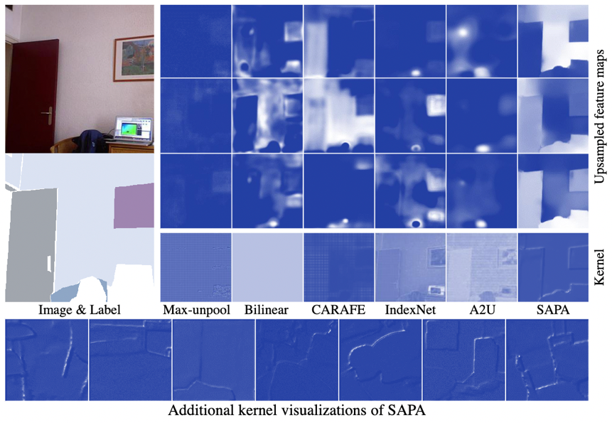 德赢官网陆昊副教授、刘禹良研究员、曹治国教授以及刘文泽、叶紫璇、付洪涛等研究生的论文“SAPA: Similarity-Aware Point Affiliation for Feature Upsampling”被NeurIPS 2022录用。该论文研究深度网络中的特征上采样。上采样旨在恢复空间分辨率,是许多稠密预测模型中的基础操作。但由于上采样本身属于病态的逆问题,算子常引入启发式策略设计,导致上采样后的特征要么过于平滑,要么过于稀疏;不同算子在不同任务中表现不一。为了解决以上问题,论文首次为特征上采样引入了点归属的概念,并基于此提出了一类通用的上采样算子SAPA,通过形式化一种新型的动态上采样核以学习编码器特征点和解码器特征之间的局部互相似性,可在上采样过程中准确地分配点的语义归属,在保持特征语义平滑的同时和维持特征边缘锐度。实验证明SAPA可为一系列不同类型的稠密预测任务,包括语义分割、目标检测、深度估计和图像抠图等,带来一致的性能提升。