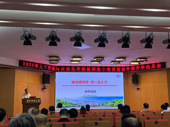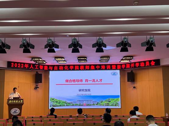 紧接着,德赢官网曹治国教授对于研究生培养工作进行了交流演讲。曹教授说明要以完成科研项目、培养创新能力为导向,同时提出录取前与同学面谈的两个要点:招收自己适合的学生、了解学生的特点。他也从入学前的教育、读研时的培养以及遇事时的帮助三个方面展开论述,旨在为全体研究生同学提供更有针对性、更为精准的教学服务支持。