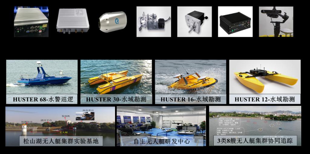 图1、中心自主研发的系列自主无人艇及感知、推进、控制、协同系列核心功能部件