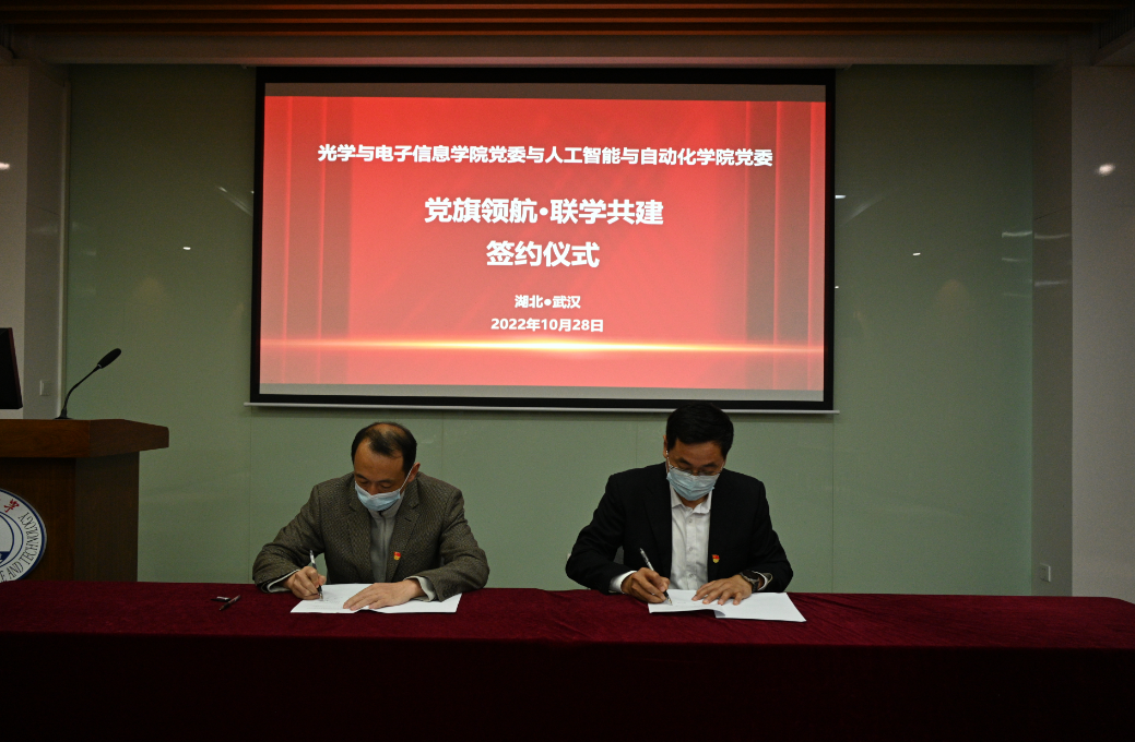 10月28日上午11:00,光学与电子信息学院党委和德赢官网Vwin,德赢AC米兰官网党委“党旗领航·联学共建”签约仪式在光电信息大楼C112举行。两个学院的党委书记、副书记、教工党支部书记代表、相关科室负责人等参加本次活动,签约仪式由光电学院张敏明副书记主持。