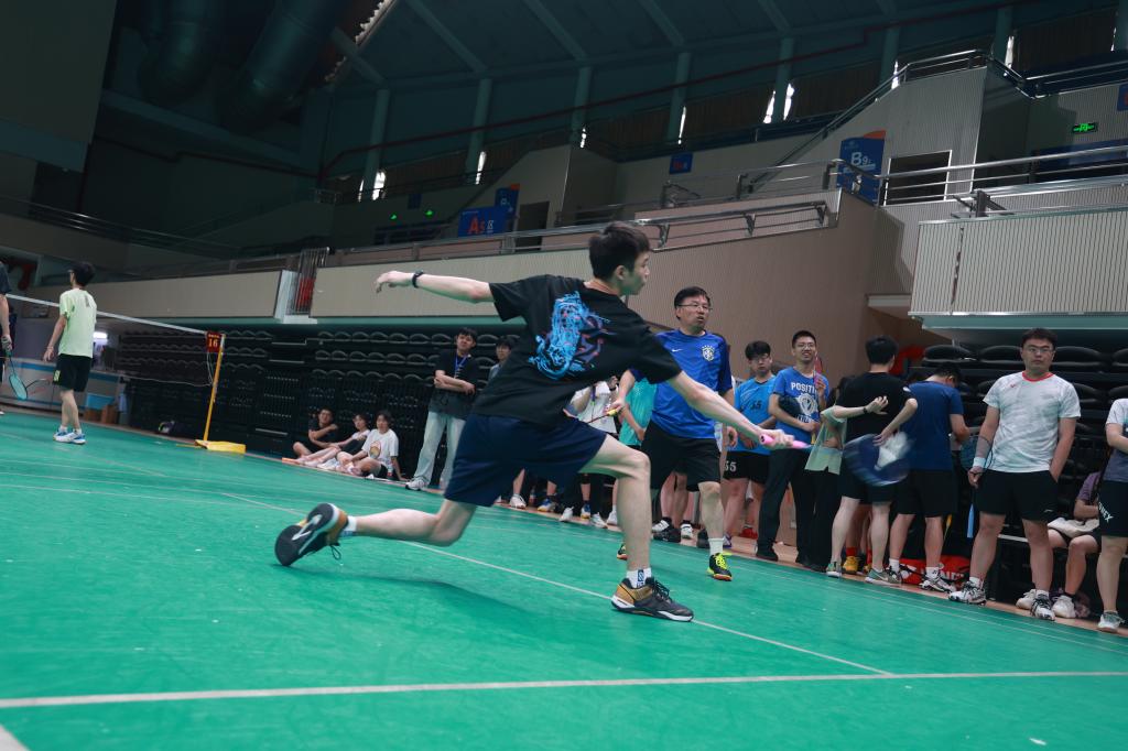 本次比赛采用国家体育总局近年审定的羽毛球竞赛规则,以小组赛、排位赛的形式依次晋级,并决出最终名次。每支队伍至少有一名教师参赛。校研究生院副院长潘林强,学院党委书记耿远明,副院长周纯杰,工会主席徐金榜等老师均参与其中。3日上午8时,在简短的开幕式后,比赛正式打响。每位上场队员都拼尽全力,或脚步灵活,或球路清晰,精彩的跳起杀球和鱼跃救球更是赢得阵阵欢呼;每位场下观众也不甘示弱,气势如虹,不遗余力地为己方队员加油助威,也毫不吝啬地将掌声送给所有运动员。