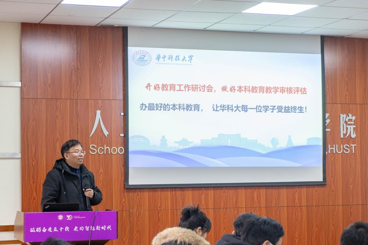 大会上,副院长周纯杰、院长助理伍冬睿分别做了“人工智能与自动化本科教育研讨工作部署及人才培养现状”和“人工智能与自动化研究生教育现状与思考”的专题报告。会议开始,周纯杰传达了学校会议精神,指出专业审核工作是2024年本科教学工作的重中之重,讲解新一轮审核评估工作动态,介绍学院教育研讨工作部署方案,强调人才培养中心地位,着重分析了学院人才培养存在的问题和挑战。伍冬睿围绕研究生培养基本情况、存在的问题、学院研究生培养举措与探索,提出了初步的研究生教育工作研讨方案。